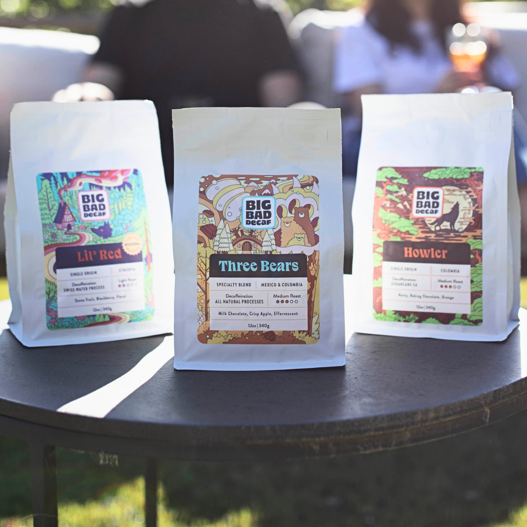 Until now. That is what we set out to find and to roast. Delicious, specialty decaf coffee that we love to drink. That you'll love to drink. So you won't have to sacrifice anything when taking control of your caffeine consumption. Welcome to Big Bad Decaf. Not scary, just scary good.